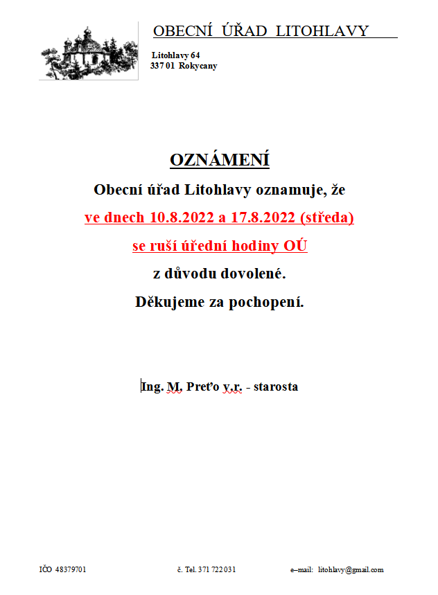 Dovolená - Obecní úřad 10.8. a 17.8.2022