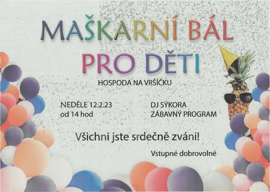 Maškarní bál pro děti 12.2.2023