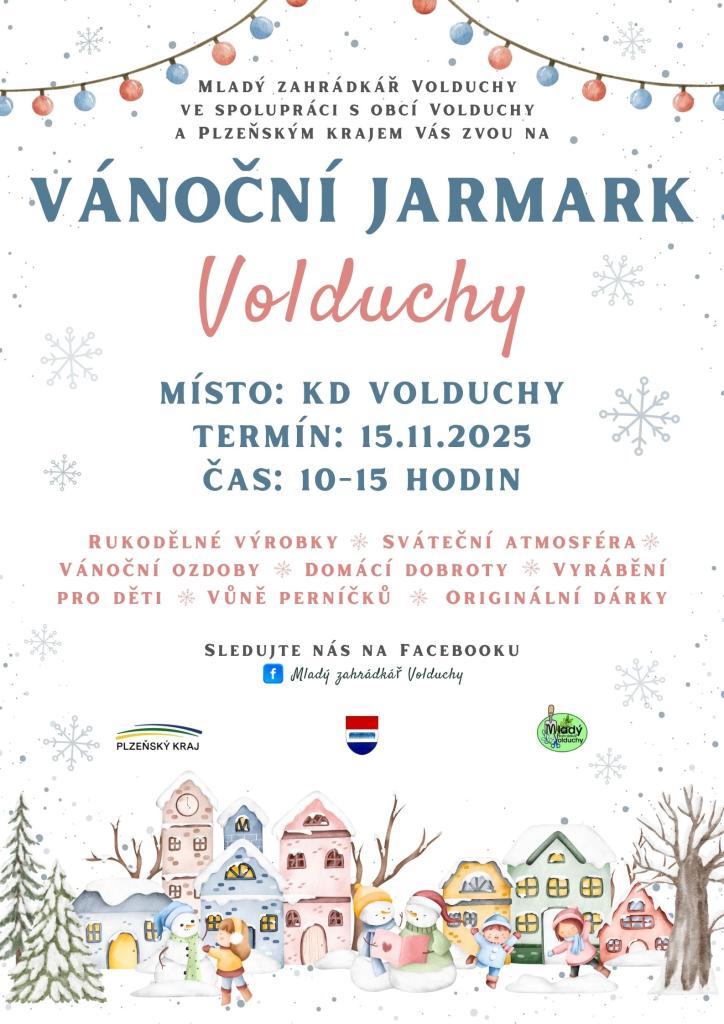Mladý zahrádkář ve spolupráci s obcí Volduchy a Plzeňským krajem pořádá Vánoční jarmark. Akce se uskuteční 15. listopadu 2025 od 10 do 15 hodin v kulturním domě ve Volduchách. Těšit se můžete na rukodělné výrobky, vánoční ozdoby a domácí dobroty. Pro mladé návštěvníky budou připraveny atrakce a vůně perníčků.